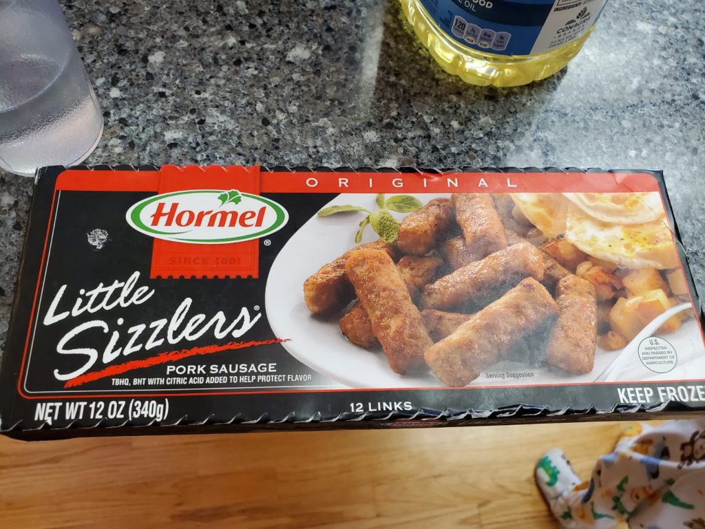 breakfast sausage links (Dad traditionally used “Little Sizzlers” but, sadly, they are no more)
